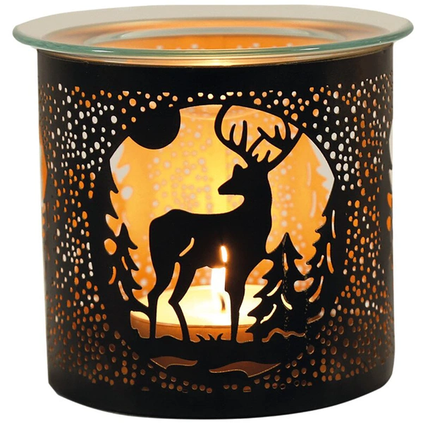 Metalen geurbrander voor wax geuroliën en kandelaar 2in1 Stag Black Woodbridge