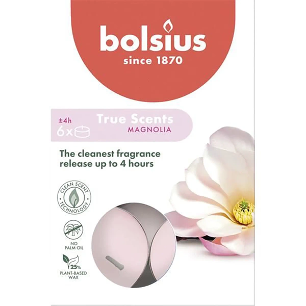 Bolsius True Scents geurende theelichthouders 6 stuks - Magnolia