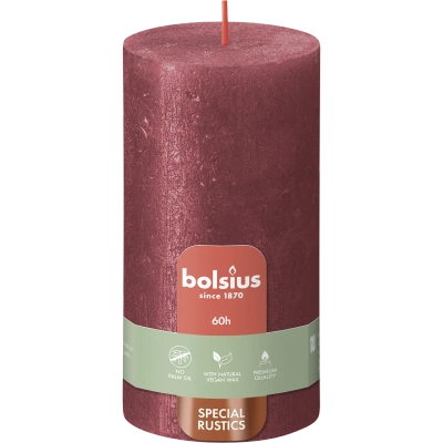 Bolsius świeca bryłowa pieńkowa rustykalna słupek Rustic Shine 100/50 mm 10 cm - Delikatna Czerwień Delicate Red