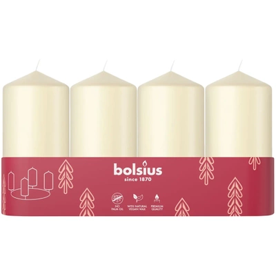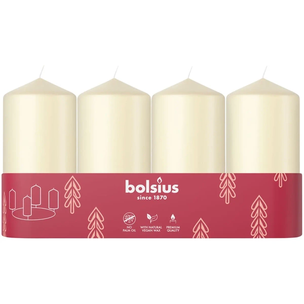 Bolsius świeca bryłowa pieńkowa zestaw 4 szt słupek bezzapachowa adwentowa 10 cm 100/48 mm - Kremowa