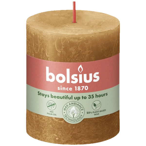 Bolsius świeca bryłowa pieńkowa rustykalna słupek Rustic Shine 130/68 mm 13 cm - Korzenny Brąz Spicy Brown