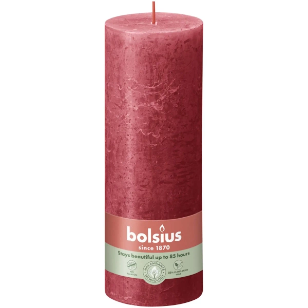 Bolsius świeca bryłowa pieńkowa rustykalna słupek Rustic Shine 190/68 mm 19 cm - Delikatna Czerwień Delicate Red