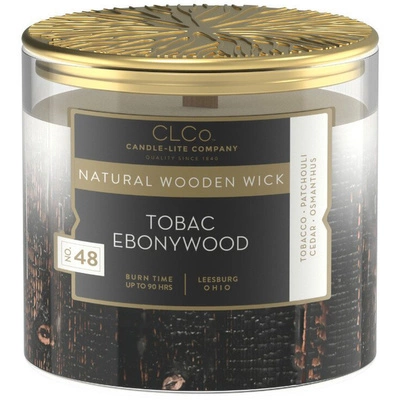 Duża świeca zapachowa w szkle z drewnianym knotem Tobac Ebonywood Candle-lite 396 g