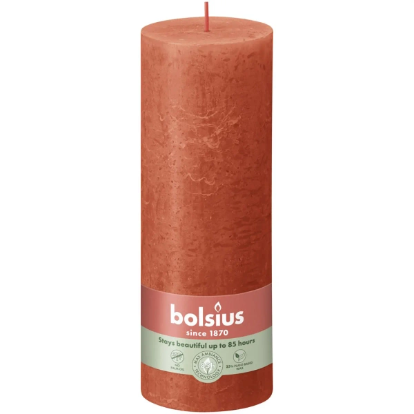 Bolsius świeca bryłowa pieńkowa rustykalna słupek Rustic Shine 190/68 mm 19 cm - Ziemisty Pomarańcz Earthy Orange