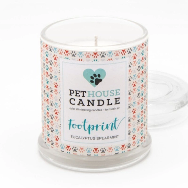 Sojowa świeca zapachowa w szklanym słoiku neutralizacja zapachów PetHouse Candle Footprint Eukaliptus Mięta 250 g