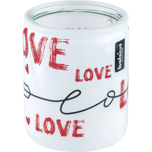Bolsius walentynkowa świeca zapachowa w szkle 82/68 mm z napisem Love - Linen