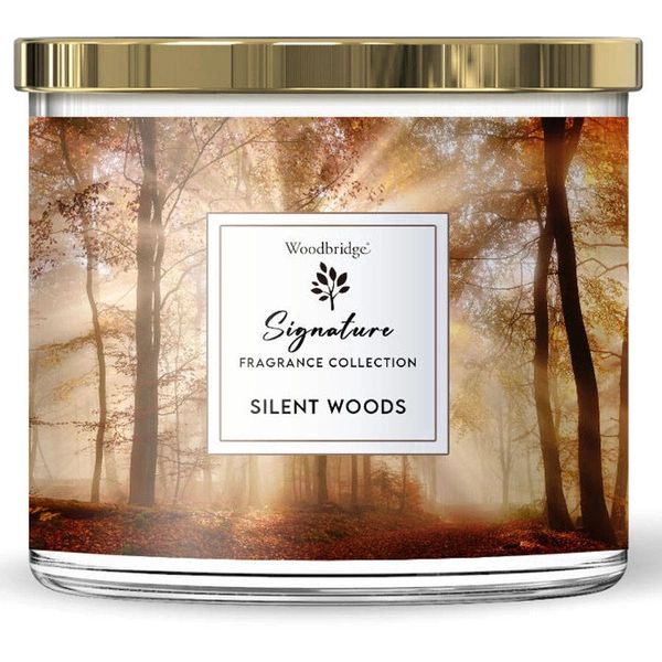 Duża świeca zapachowa w szkle z trzema knotami Silent Woods Woodbridge Candle 410 g