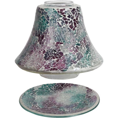Klosz do świec i podstawka pod świecę zestaw Rainbow Crackle Woodbridge Candle