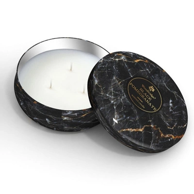 Duża marmurowa świeca zapachowa w metalowym puzderku z trzema knotami Black Pomegranate Woodbridge Candle 470 g