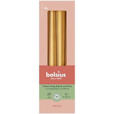 Bolsius świeca stołowa szpica metalizowana bezzapachowa 4 szt 245/24 mm - Metaliczny Złocisty Pomarańcz Metallic Golden Orange