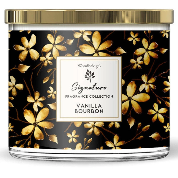 Duża waniliowa świeca zapachowa w szkle z trzema knotami Vanilla Bourbon Woodbridge Candle 410 g