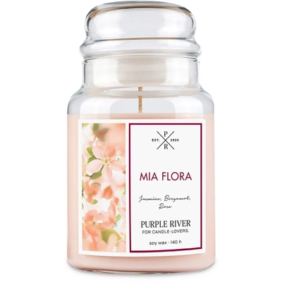 Veľká sójová kvetinová sklenená vonná sviečka Mia Flora Purple River 623 g