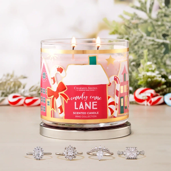 Charmed Aroma julljus med smycken 340 g ring - Candy Cane Lane