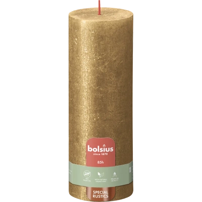 Bolsius Rustic Shimmer stamljus rustikt metalliserat oparfymerat 19 cm 190/68 mm - Golden Gold