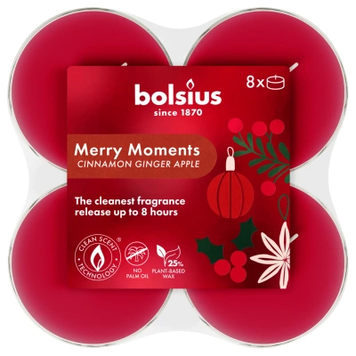 Bolsius merry Moments maxi polykarbonat doftande värmeljus 8 st äpple och kanel