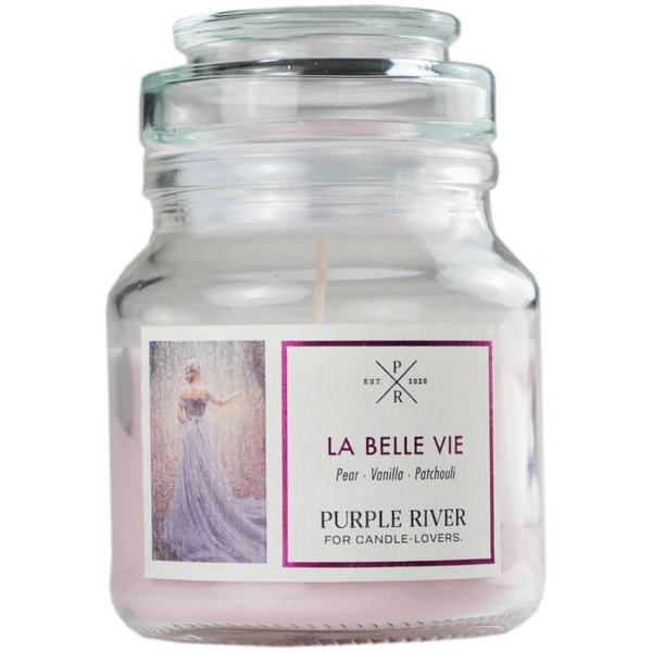 Doftljus soja i glas Mia Flora Purple River 113 g