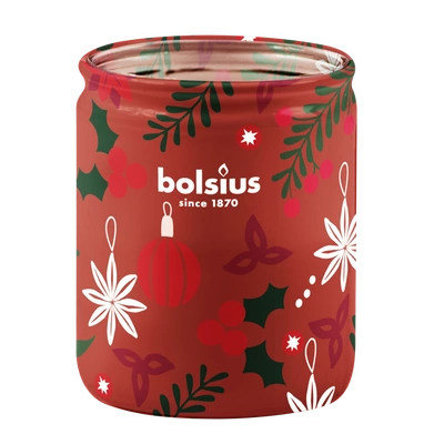 Bolsius juldoftande glasljus 82/68 mm med jultema True Glow - Merry Moments